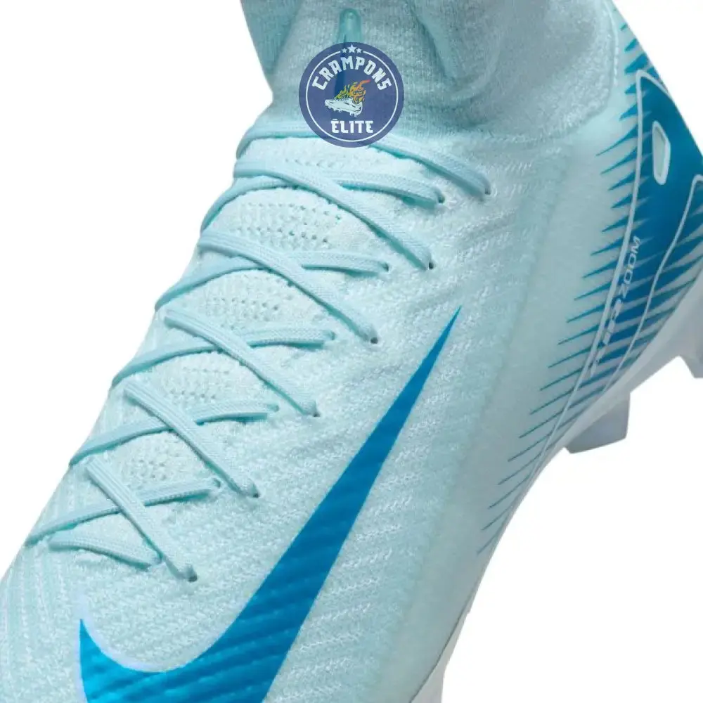 La Mercurial Superfly 10 Elite FG Mad Ambition Bleu Ciel est une chaussure de football haut de gamme conçue pour les joueurs qui exigent le meilleur sur pelouse naturelle. Elle allie légèreté, accélération et précision pour des performances constantes durant les matchs et les entraînements.